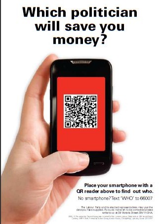 The card, personalised by first name and street, informs recipients that ‘On 7 October 2012 one politician will save residents on xxxx street £1000.’ By scanning the QR code on the leaflet they are then taken directly to a video message from Ken Livingstone, pledging to deliver his Fare Deal plan and promising he will resign if he has not introduced a 7% cut to fares by 7 October 2012. If the user doesn’t have a smart-phone they can text 66007 with the word “Who” to find out.