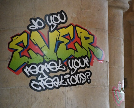 The ancient walls and pillars of this World Heritage Site have been temporarily decorated with rhetorical questions in the style of graffiti.