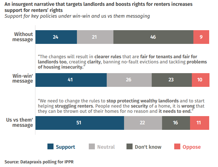 Framing rental reforms as a win for tenants and landlords boosted support, but framing them as helping tenants over landlords boosted it far more: