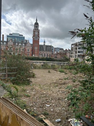 We turned a corner to see a combination of derelict buildings and a large boarded up area. Davis asked me to look through the gap in the fencing and tell her what I saw. It was, as she knew, a giant hole of rubble and emptiness surrounded by tall abandoned buildings. She explained to me, her most successful video had been filmed here, sat on the upper deck of a bus which provides a clearer view over the boards. The bus stop that provides this scenery is announced as “Croydon town centre” over the tannoy. In Davis’ video, she tells the camera that when the bus announces ‘Croydon town centre’ “all we see is a giant hole where our heart should be”, blaming the neglect on companies abroad who maintain ownership of the abandoned sites while not supporting any redevelopment in the town centre.