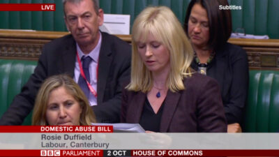 Video WATCH: Rosie Duffield’s domestic abuse speech Rosie Duffield gave a deeply moving speech during the domestic abuse bill debate this afternoon in which she… 2nd October, 2019, 4:12 pm